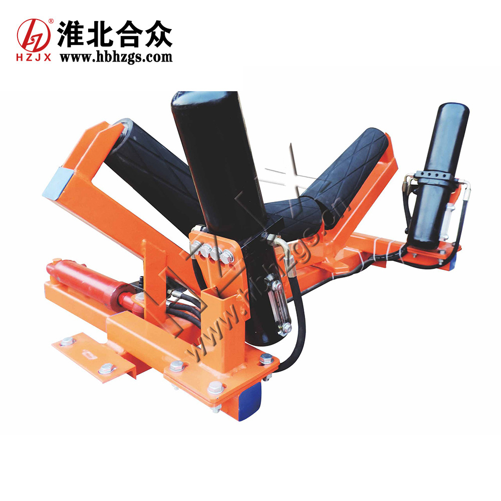 Cuando la banda se desvía, se detecta que el rodillo vertical gira debido a la fuerza, y la energía mecánica se convierte en líquido. Usando energía de presión, el cilindro de aceite impulsa la varilla de empuje para girar, formando un ángulo de corrección con un efecto de corrección, y el punto de corrección puede bajar automáticamente el punto de desviación de la banda a una cierta altura para lograr un mejor efecto de corrección.