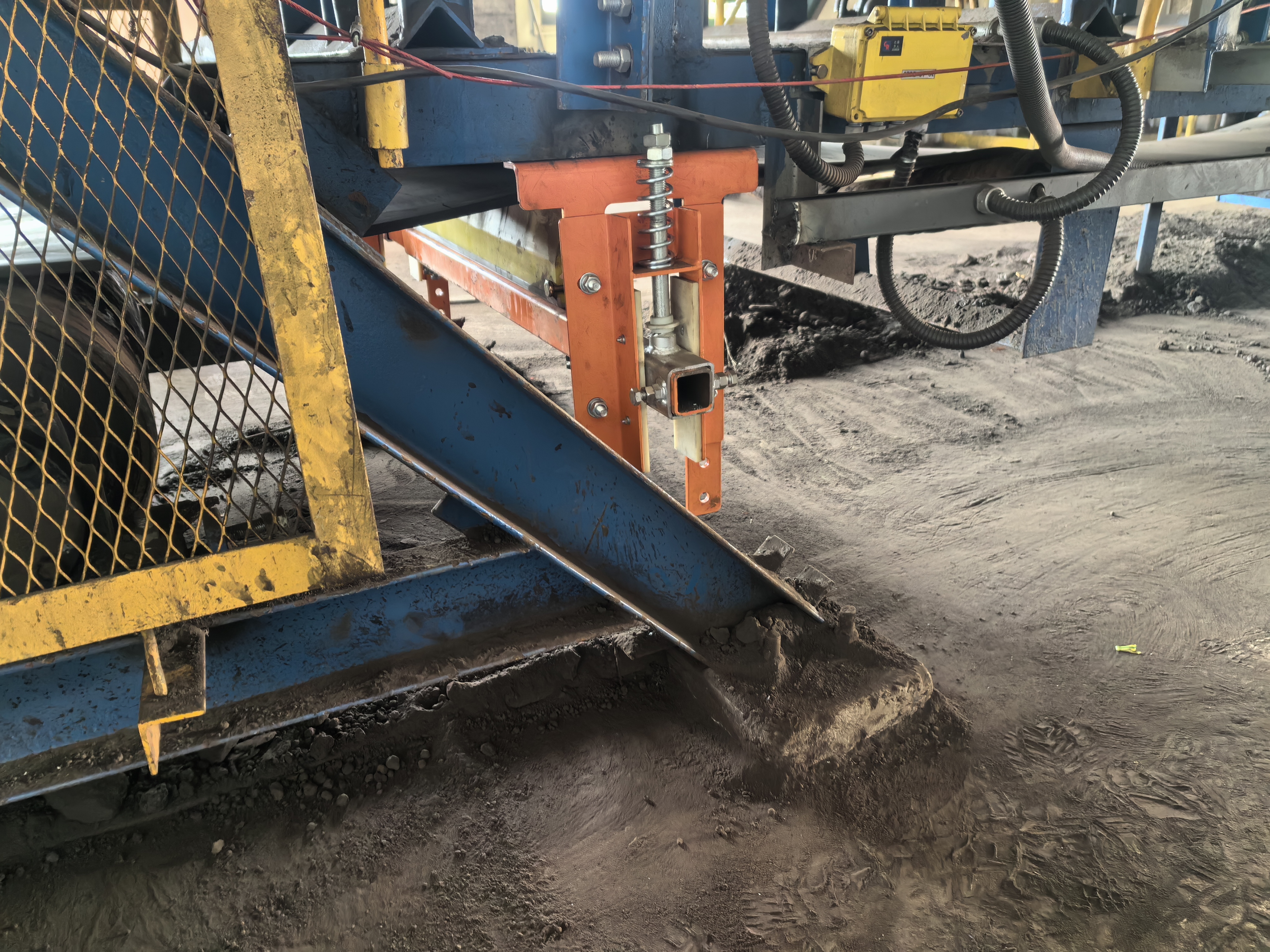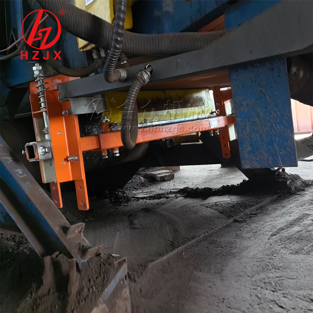 Se utiliza para la segunda limpieza de los accesorios en la superficie inferior de la correa de retorno de alta velocidad del transportador de correa. Instalado en la sección de retorno debajo del tambor de descarga, resuelve el problema de la contaminación ambiental causada por materiales residuales que se derraman en la sección de retorno del transportador y la desviación de la correa de retorno causada por materiales residuales que se adhieren a los rodillos.